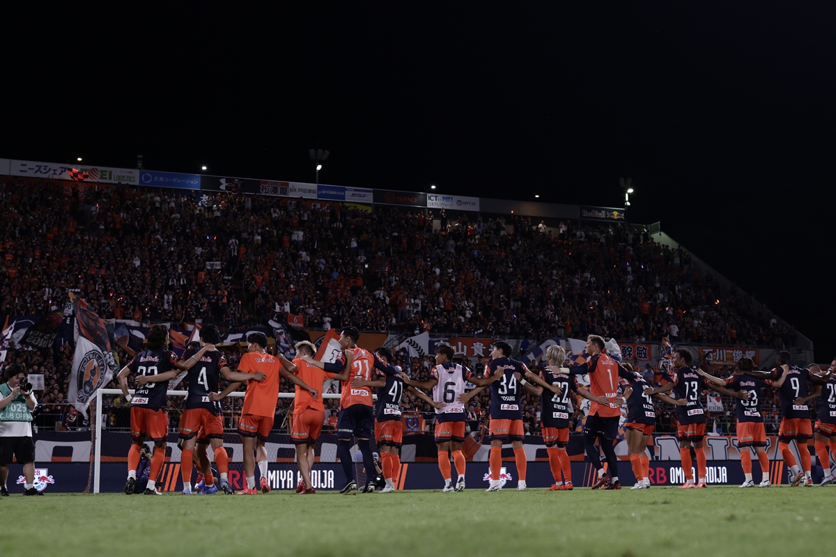 「去年あれだけ勝って上がってきて、今年も良い順位につけてますけど、このまま終わってJ1に昇格できなかったら、『なんか良かったよね』で終わっちゃうと思います。レッドブルの強力なサポートがある中、いろいろなことが良くなって、毎試合1万人を越えるファン・サポーターが来てくれる状況で、『なんか良かったよね』で終わるのは、あまりにもったいない。今は勢いがありますし、この場所にいていいクラブじゃないと思うので、一気にバンバンと一番上まで行きたいです。埼玉県には浦和レッズもあるので、大宮がJ1復帰を実現すれば、サッカーの熱がもう1回高まると思いますし」