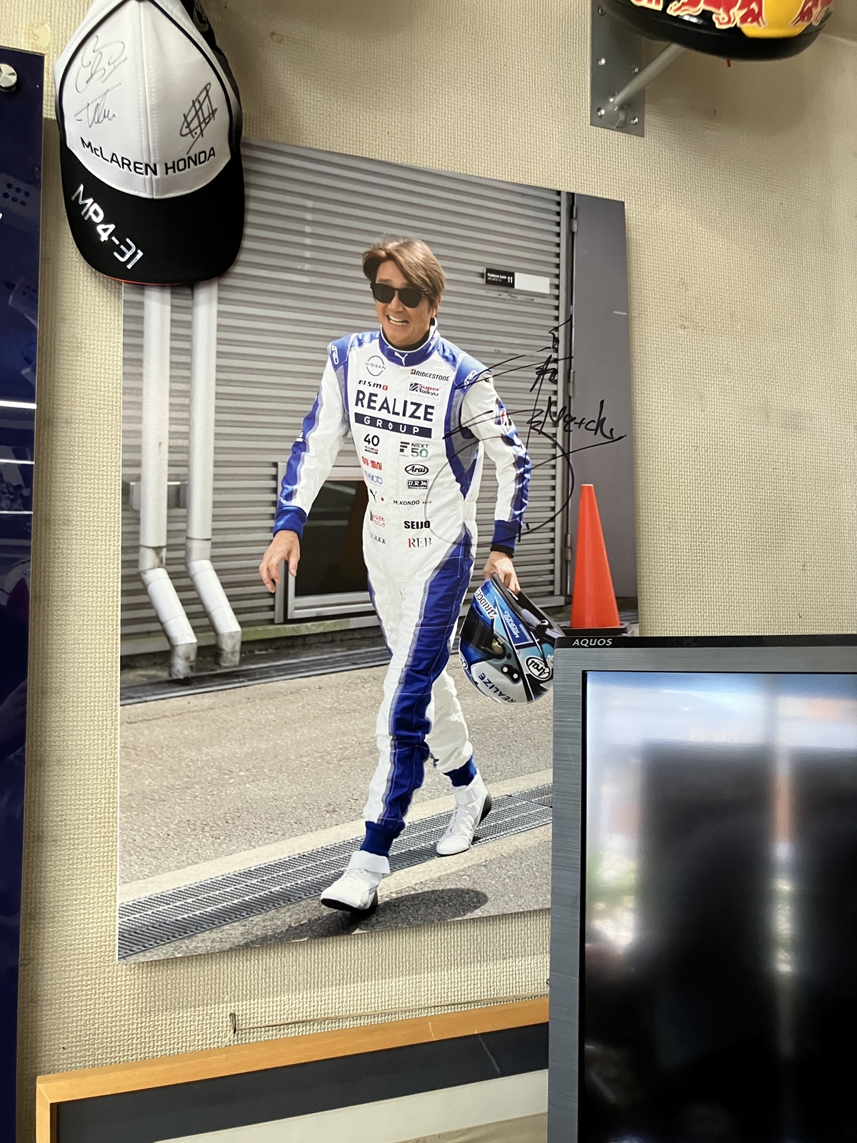 上「そうです。マッチさんはスーパーフォーミュラという四輪のレースに参戦されているので。そこにあるサインも直筆ですよ」