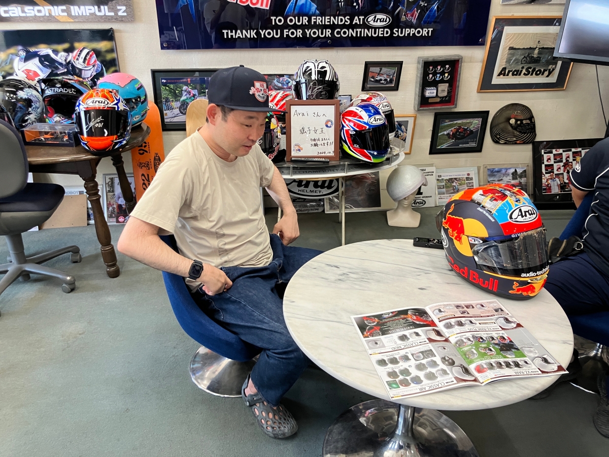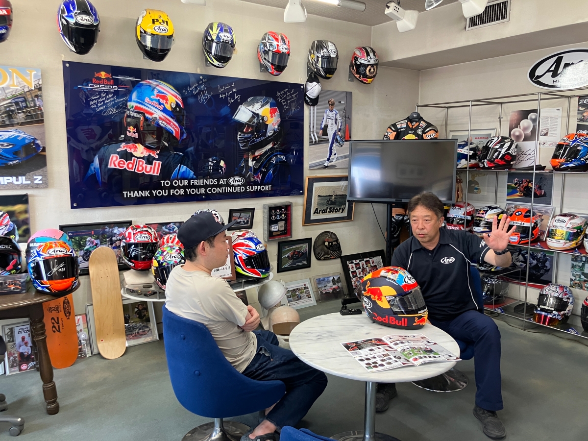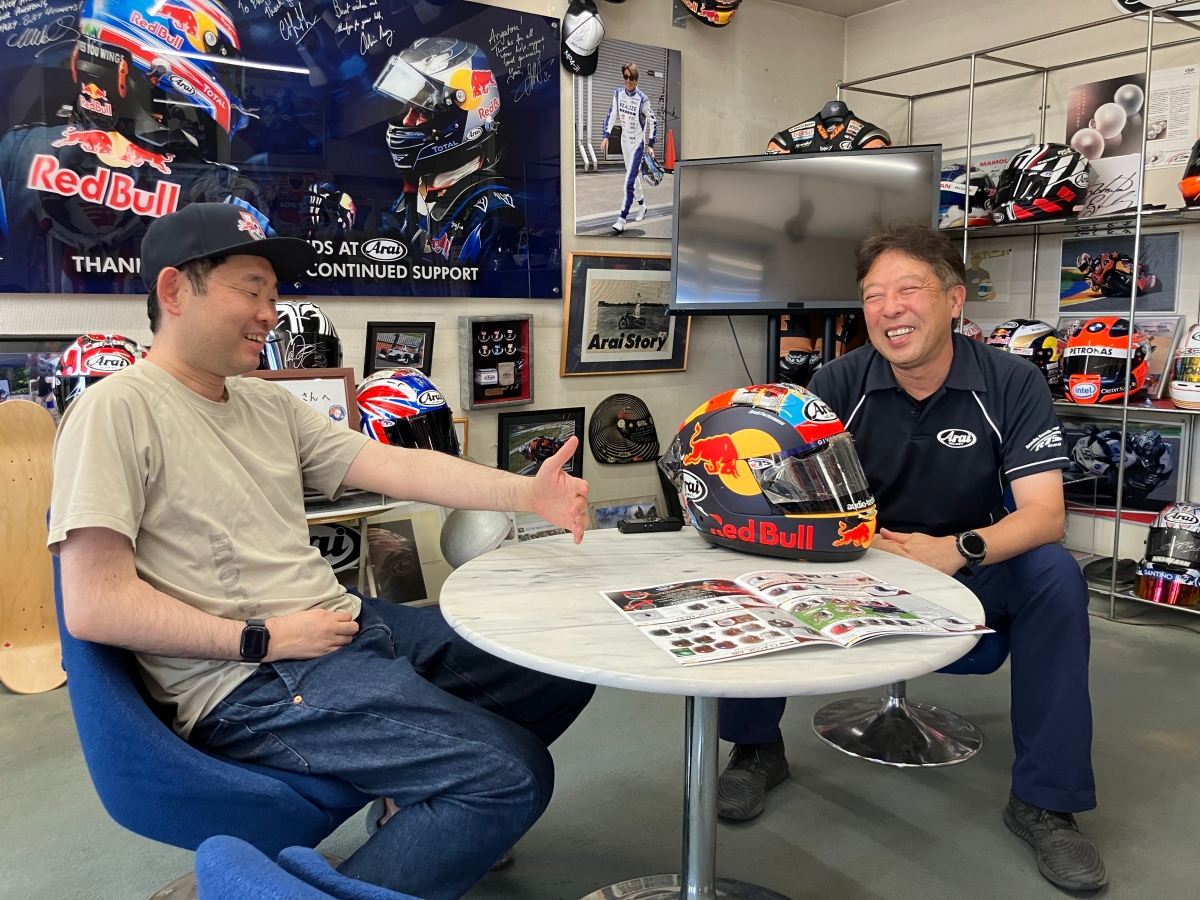 今野さんが「ただのファン目線」で行きたい場所に足を運び、会いたい人に会い、書きたいことを綴る本連載。今回は、NACK5スタジアム大宮の近くに本社を構える株式会社アライヘルメットさんを訪問。後編では、広報部の上幸一さんに、会社の歴史やご自身のバイク・ヘルメットへのこだわりについて根掘り葉掘り聞きました。