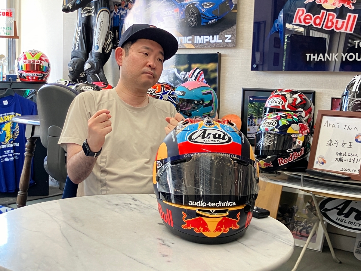 今野「せっかくなので、レッドブルのロゴが入っているヘルメットを(テーブルに)置いてしゃべりましょうよ」