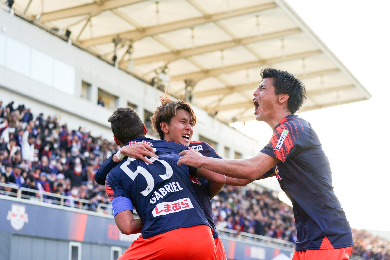 宮沢悠生監督が就任した第31節のジュビロ磐田戦から、チームは5勝1分と6戦負けなしだ。第31節以降の勝点獲得のペースは、リーグ最多である。6試合のうち5試合で複数得点を記録しており、逆転勝利あり、終盤の決勝点や同点弾あり、ゴールラッシュあり、途中出場の選手のゴールありと、どの角度から見ても波に乗っている。J1昇格の可能性があるチームで、今もっとも勢いがあると言っていい。