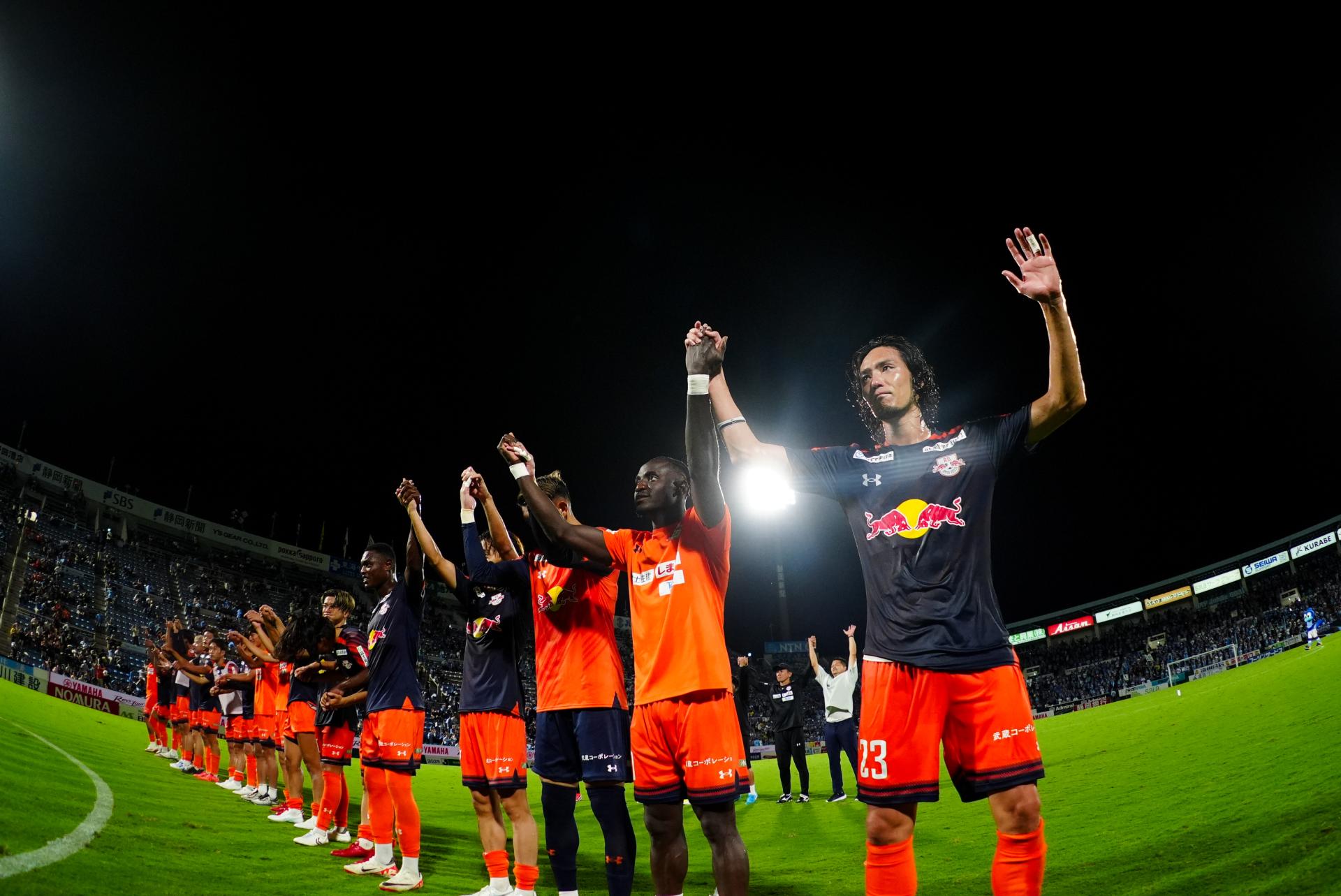 終盤、反撃に出てきた磐田に対して、大宮は選手交代をまじえながら時計の針を進める。74分に藤井と津久井、4分後にはファビアン ゴンザレスと和田がピッチに送り込まれた。そこからは激しく攻守が入れ替わり、両ゴール前での攻防が続く。89分、杉本のパスを受けた津久井のカウンターは実らず、1点差に詰め寄られるゴールも許したが、最後まで粘り強く戦い、アウェイで歓喜のタイムアップを迎えた。