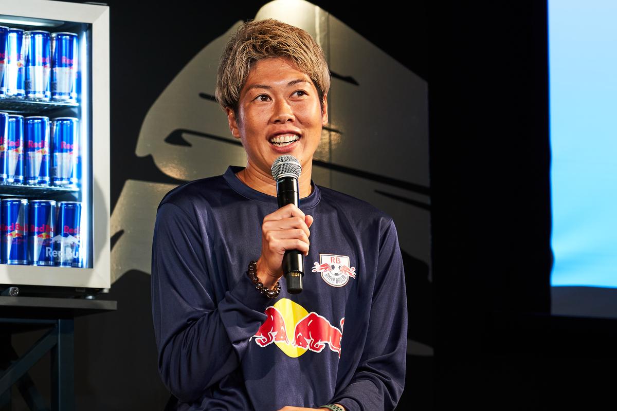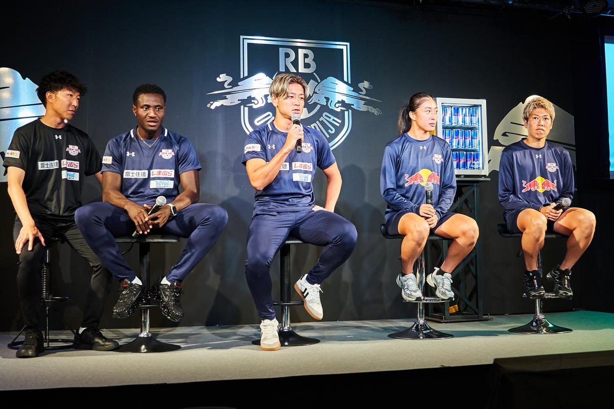 TALK SESSIONでは、RB大宮アルディージャのオリオラサンデー 選手、下口稚葉 選手、RB大宮アルディージャWOMENの田中聖愛 選手、齊藤夕眞 選手が登壇しました。選手の視点でレッドブルグループになって変わったこと、ユニフォームデザインや練習環境、チームの雰囲気など、それぞれが感じていることをお伝えしました。