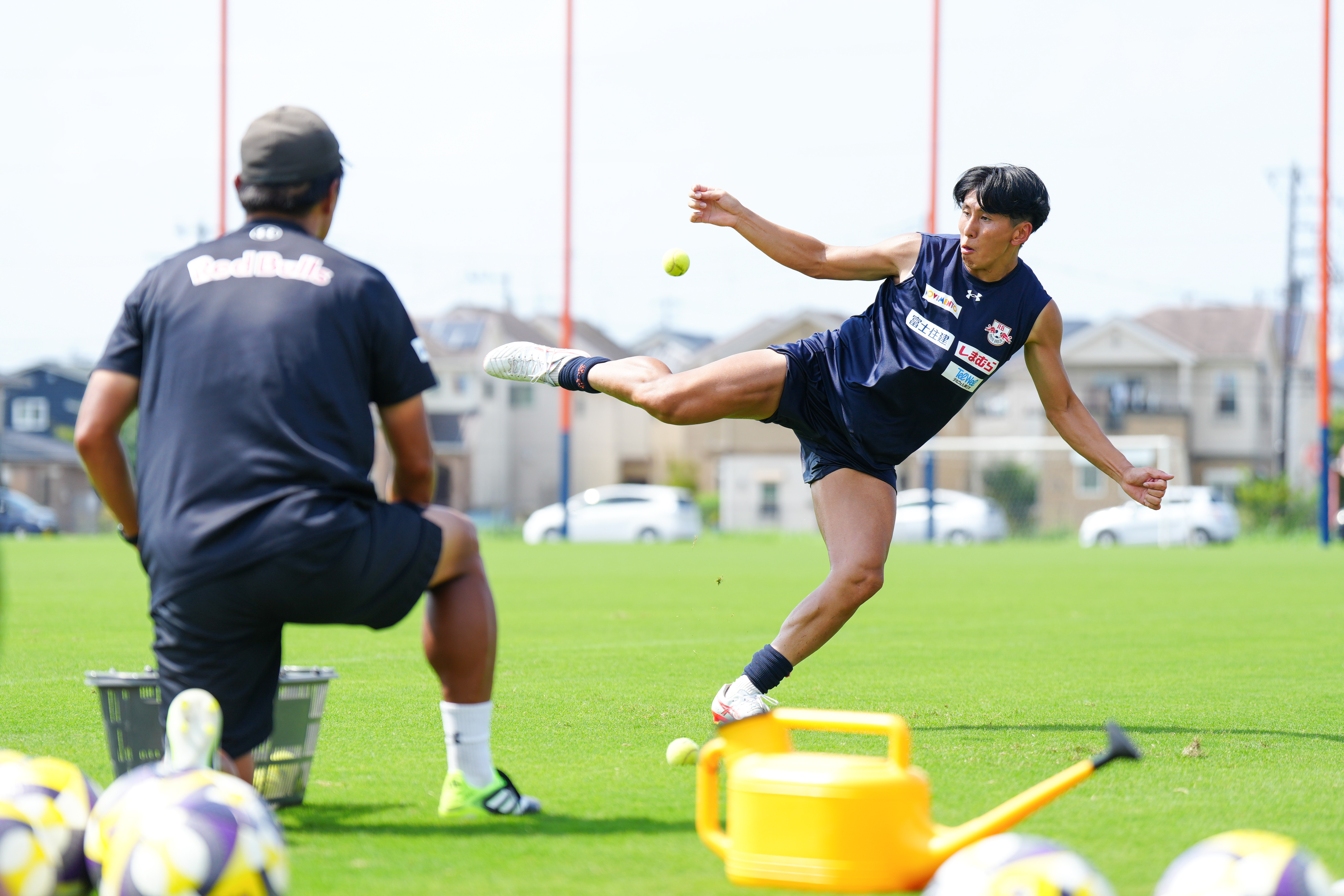 「あの練習で意識しているのは、体重をボールに乗せることです。僕はシュートを打つとき体重が後ろに残りやすいことにミツさんが気づいてくれて、そこを修整するためにやり始めました。テニスボールをパワーで持っていくんじゃなくて、しっかりとミートして体重を乗せることで、強いボールを前に飛ばす。その感覚を体に覚えさせているところです」