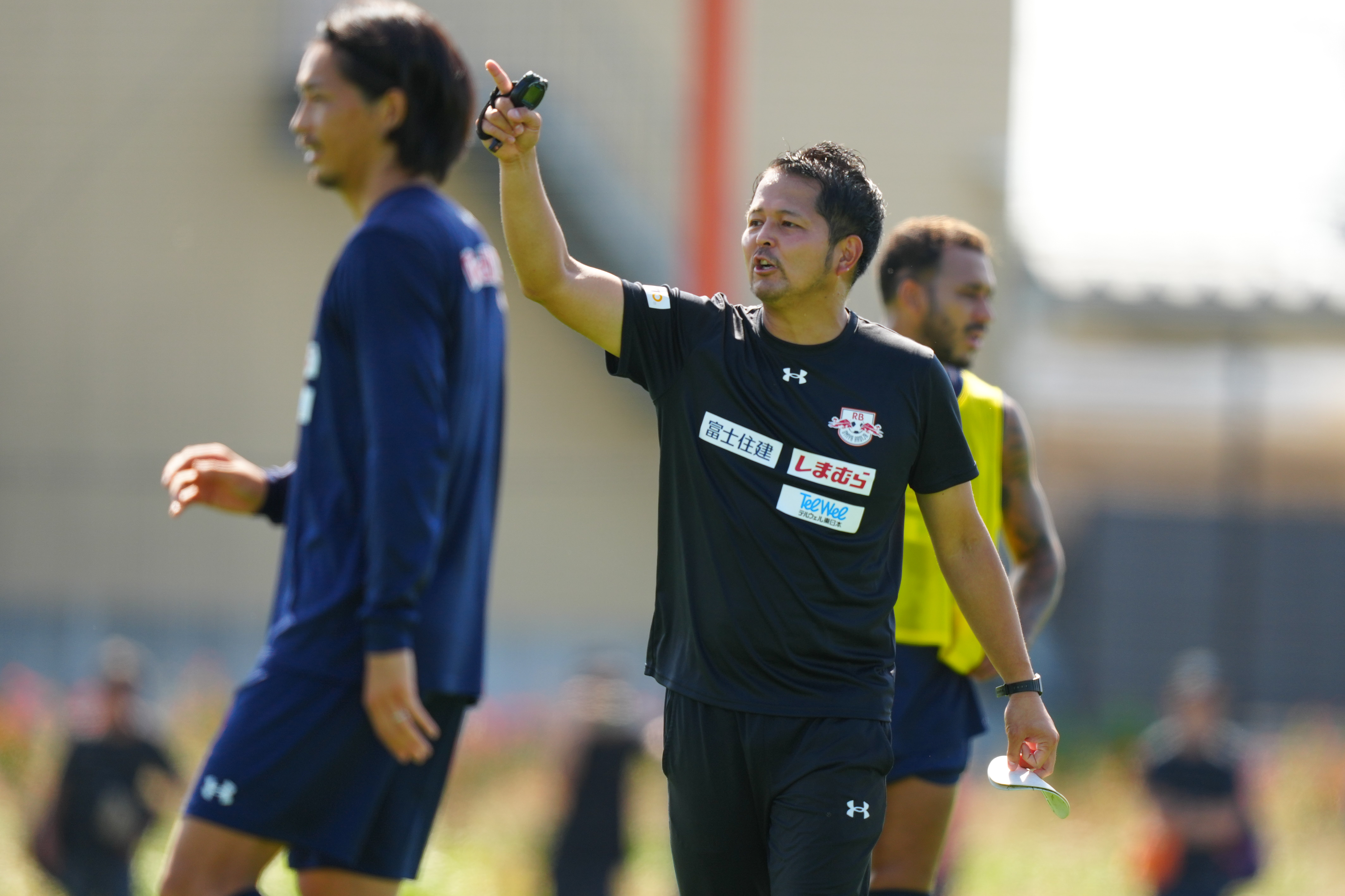 磐田、仙台を相手に連勝し、3日間のオフを挟んだ10月8日、宮沢悠生新監督の下でのトレーニングは充実していた。球際の強さや攻守の切り替えなど、これまで同様に"勝負のキワ"を徹底しながら、そこにゲーム性も盛り込んだ練習は1時間強。ビルドアップを意識したパス&コントロール、数的優位を作ってフィニッシュに持ち込む3対2、フリーマンを入れた5対5などには、モチベーションを高める宮沢監督の檄だけでなく、選手たちの笑顔や仲間を鼓舞する声が溢れていた。