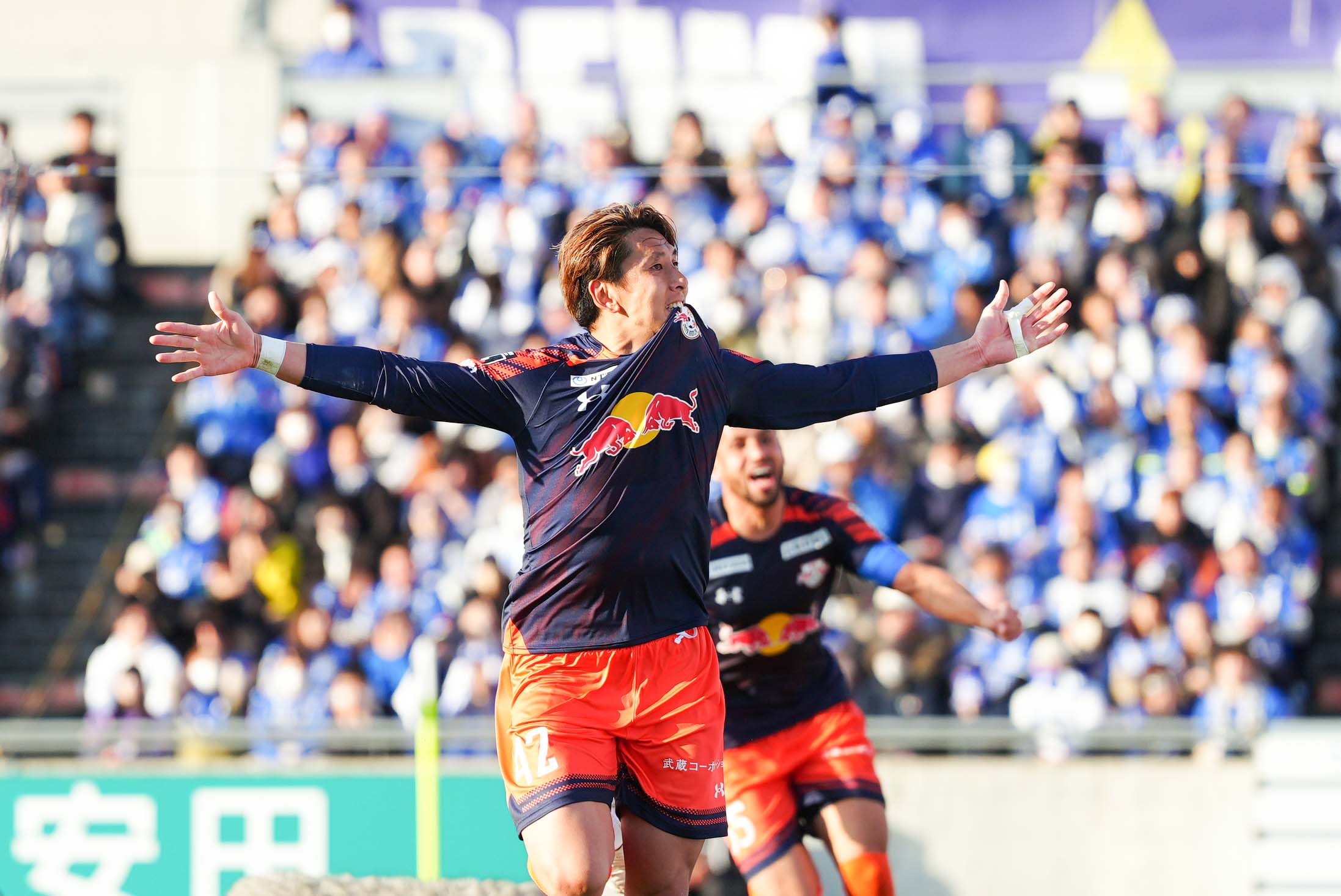 ところが、5カ月以上ゴールから遠ざかっている。得点したのは第11節・札幌戦が最後だ。途中出場が多くなり、サイドアタッカーを任される試合も増えた。長澤徹前監督のラストゲームとなった第30節・今治戦では、シャドーで先発して2本のシュートを放ったが、ゴールは奪えなかった。