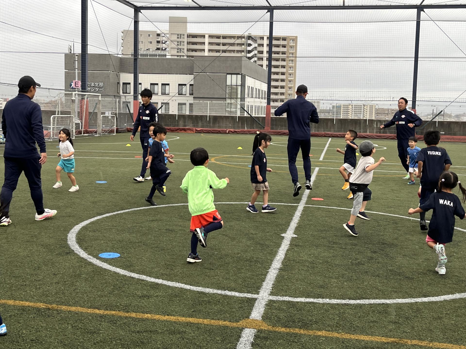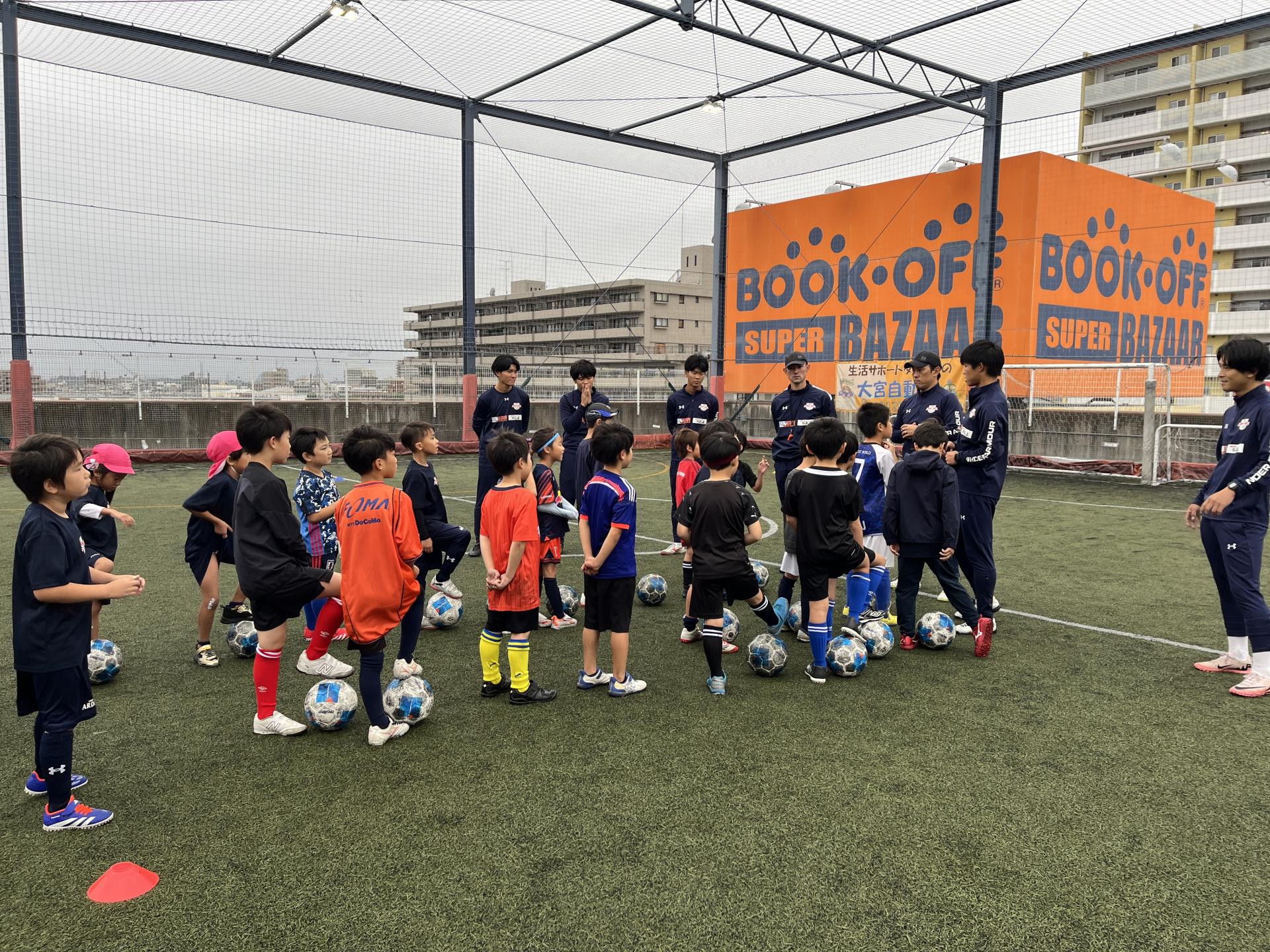 今回のサッカー教室には、年中から小学2年生の子どもたちが参加し、1回目、2回目に分けて実施しました。RB大宮アルディージャサッカースクールコーチの指導の下、ボールフィーリング、パスやドリブルの練習、ミニゲームなどを行いました。小雨が降る時間帯もありましたが、子どもたちは元気にサッカーを楽しみ、一生懸命にボールを追いかけ、終始笑顔のあふれるサッカー教室となりました。