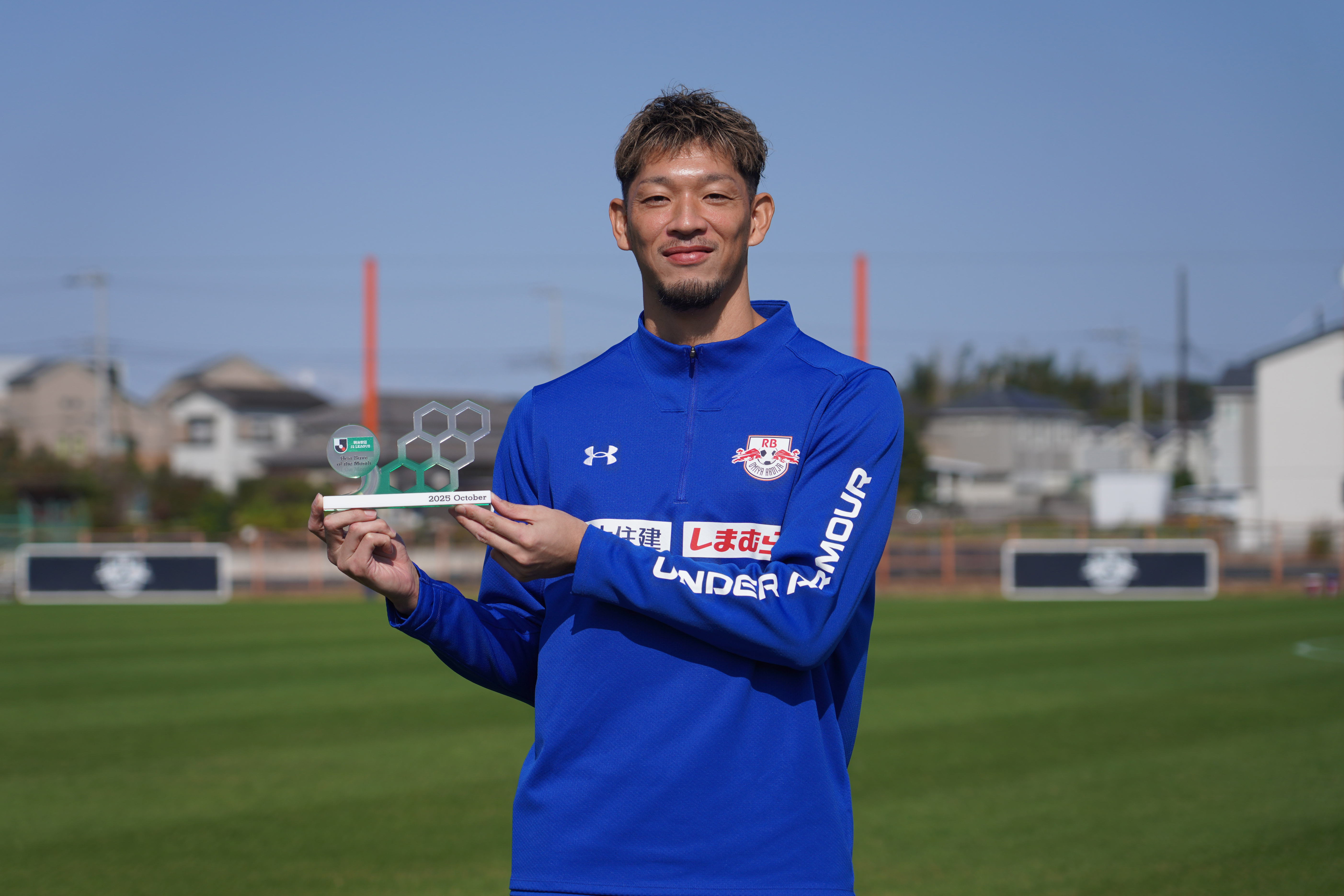 この度は、明治安田J2リーグ10月度月間ベストセーブ賞に選出していただき、ありがとうございます。今シーズン2度目の受賞となり、とても光栄に思います。このシーンは難しいタイミングでのシュートでしたが、いい準備ができていたことがこのセーブにつながったと思います。日々、切磋琢磨するチームメート、支えていただいているスタッフの方々や、家族に感謝したいです。個人としては、シーズン終盤の大事な時期に負傷で離脱することになってしまい悔しい気持ちでいっぱいですが、J1昇格に向けて必死に戦うチームのサポート、応援を引き続きよろしくお願いします!