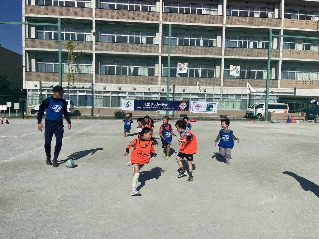 11月15日(土)、さいたま市北区のつばさ小学校グラウンドにて、「さいたま市北区少年少女&親子サッカー教室」を実施しました。
