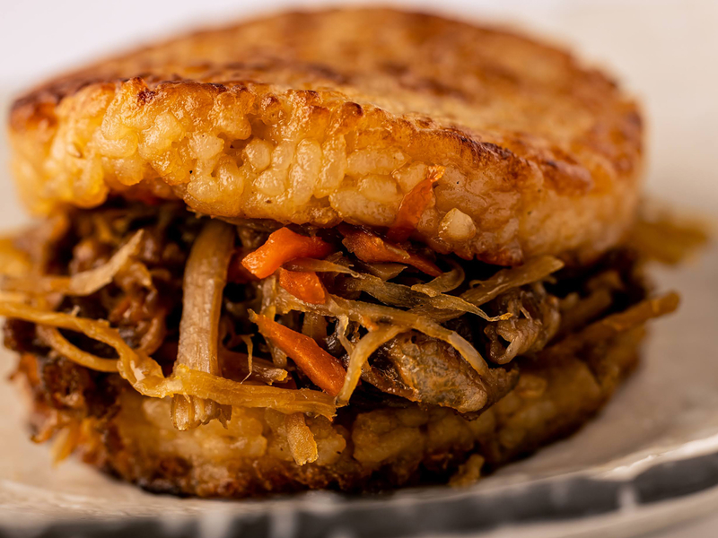 子どもから大人まで夢中になる、手のひらサイズの肉のごちそう。お店の味をそのままに、スタジアムで気軽に楽しむ贅沢焼肉ライスバーガー。3年連続百名店選出-自慢のライスバーガーをぜひ!