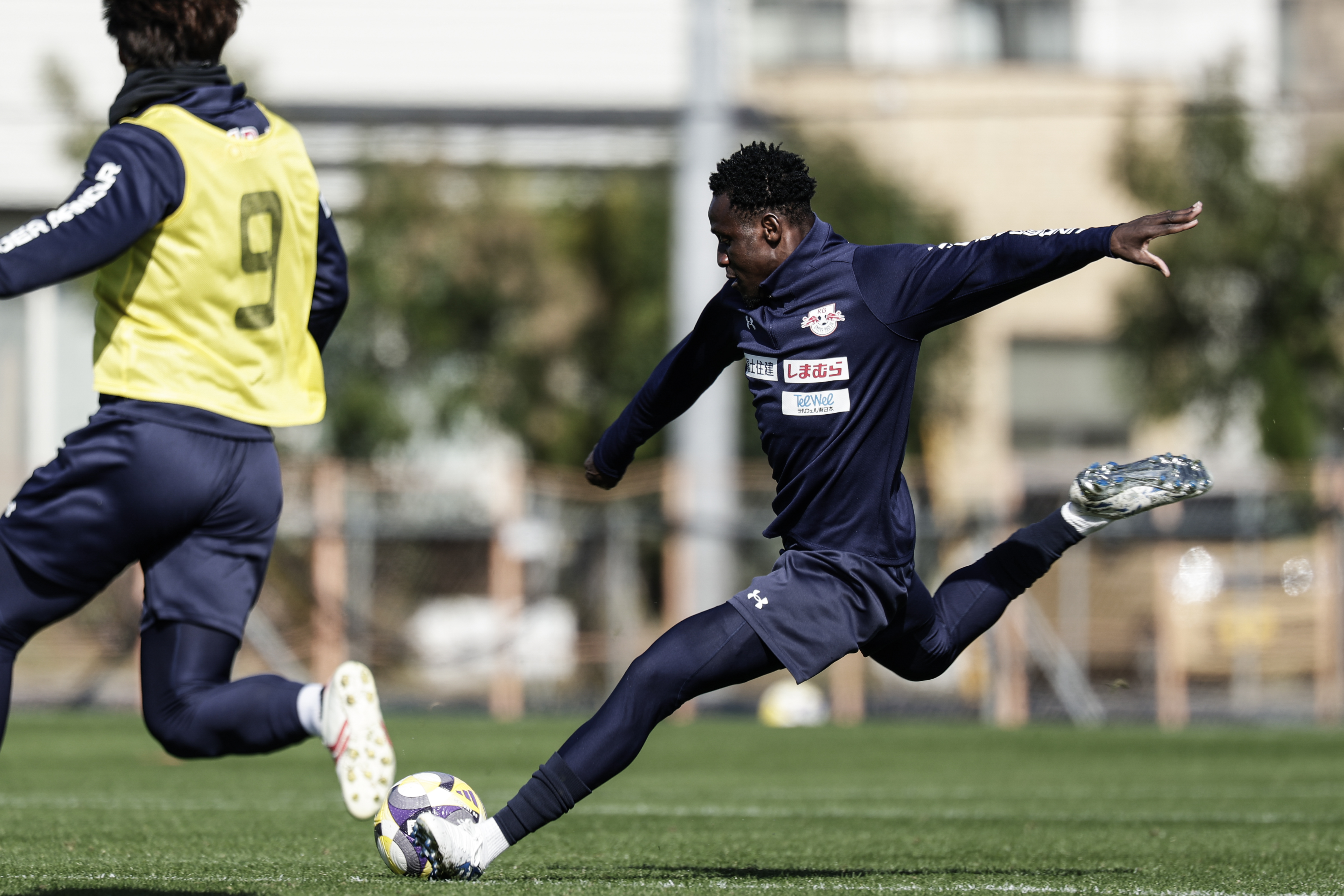 J1昇格のラスト1枠を巡るバトルへ向けて、チームは12月3日の練習から動き出した。トレーニング前には前日に25歳の誕生日を迎えた泉柊椰へ、スタッフと選手が祝福の歌を贈った。ピッチ上で誰よりも大きな声を響かせたのは、オリオラ・サンデーだった。