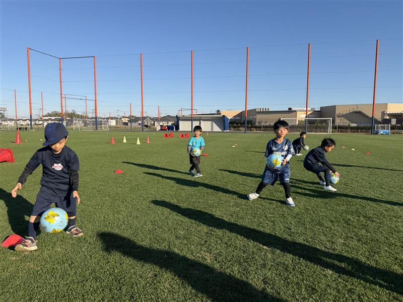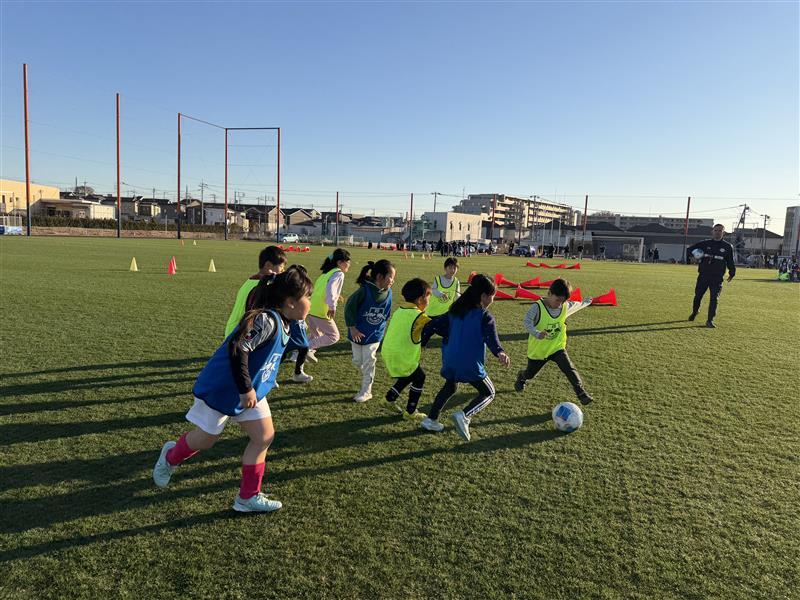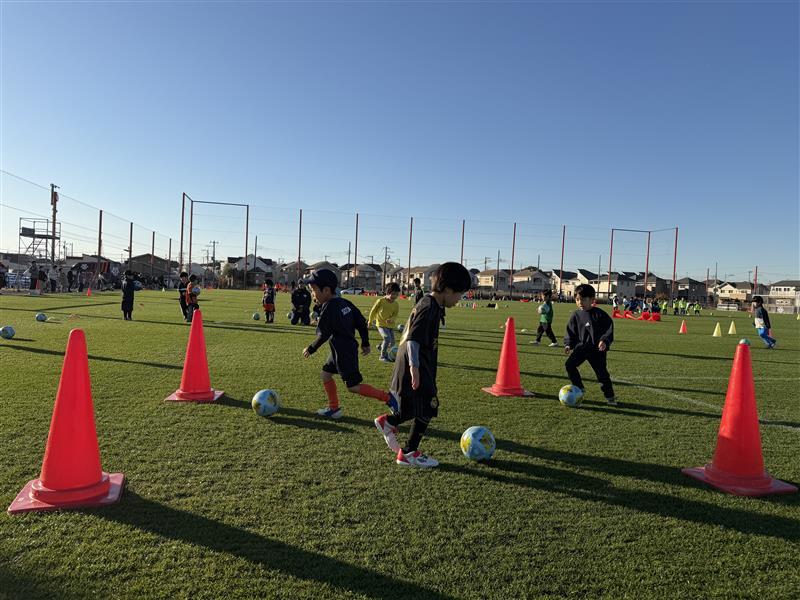 開会式では、西区役所コミュニティ課金子課長よりご挨拶をいただき、RB大宮アルディージャサッカースクールコーチの指導の下、サッカー教室が始まりました。ウォーミングアップからボールフィーリング、ミニゲームまで、学年、レベルに合わせたプログラムを実施しました。コーチや仲間たちとボールを追いかける子どもたちの表情は真剣そのもので、難しいメニューをクリアできたときやゴールを決めた瞬間には大きな笑顔があふれました。