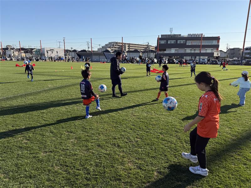 12月7日(日)、アルディージャ練習場にて、「西区少年少女サッカー教室」を実施しました。当日は冬とは思えない暖かさで澄んだ青空が広がり、西区在住のサッカーが大好きな子どもたち83名が元気に参加しました。