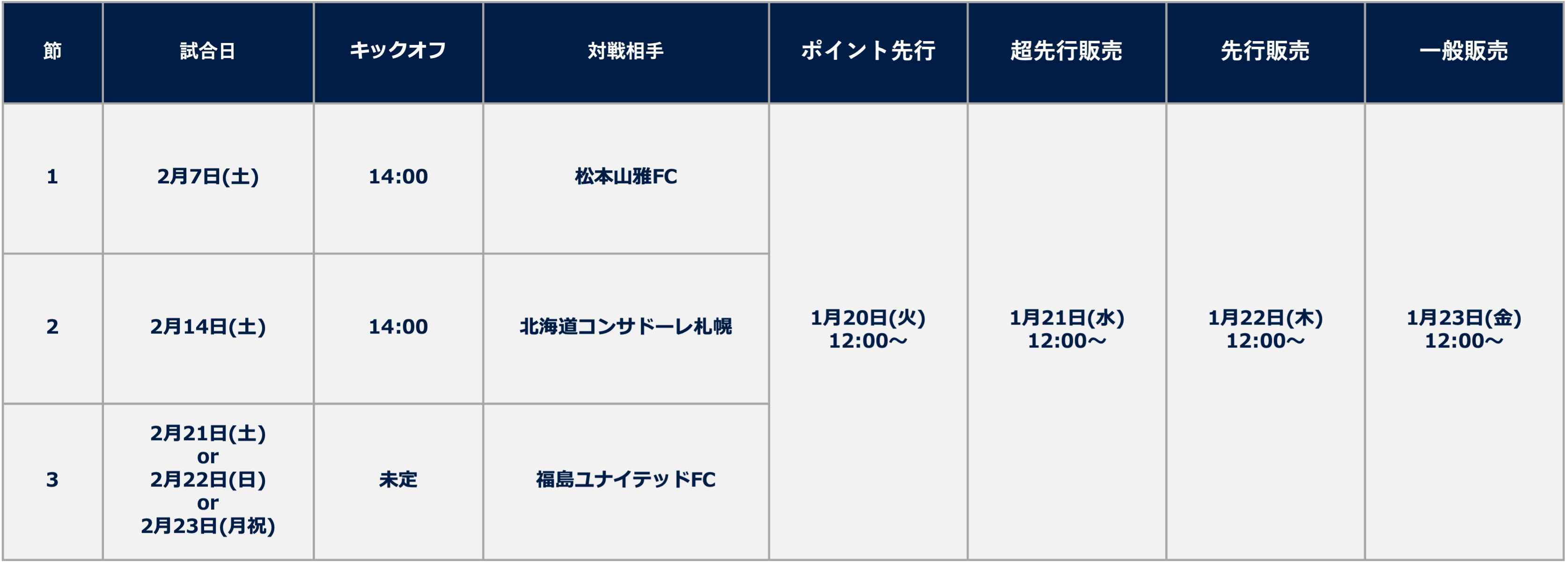 ※第6節以降の販売スケジュールについては、後日クラブ公式サイトにてお知らせします。