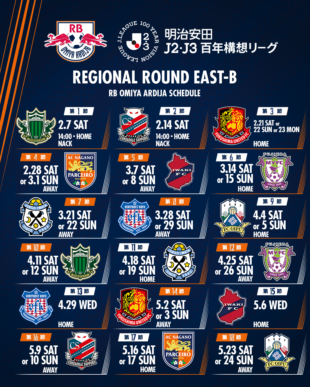 明治安田J2・J3百年構想リーグ 地域リーグラウンド(第1・2節) 試合日程決定のお知らせ