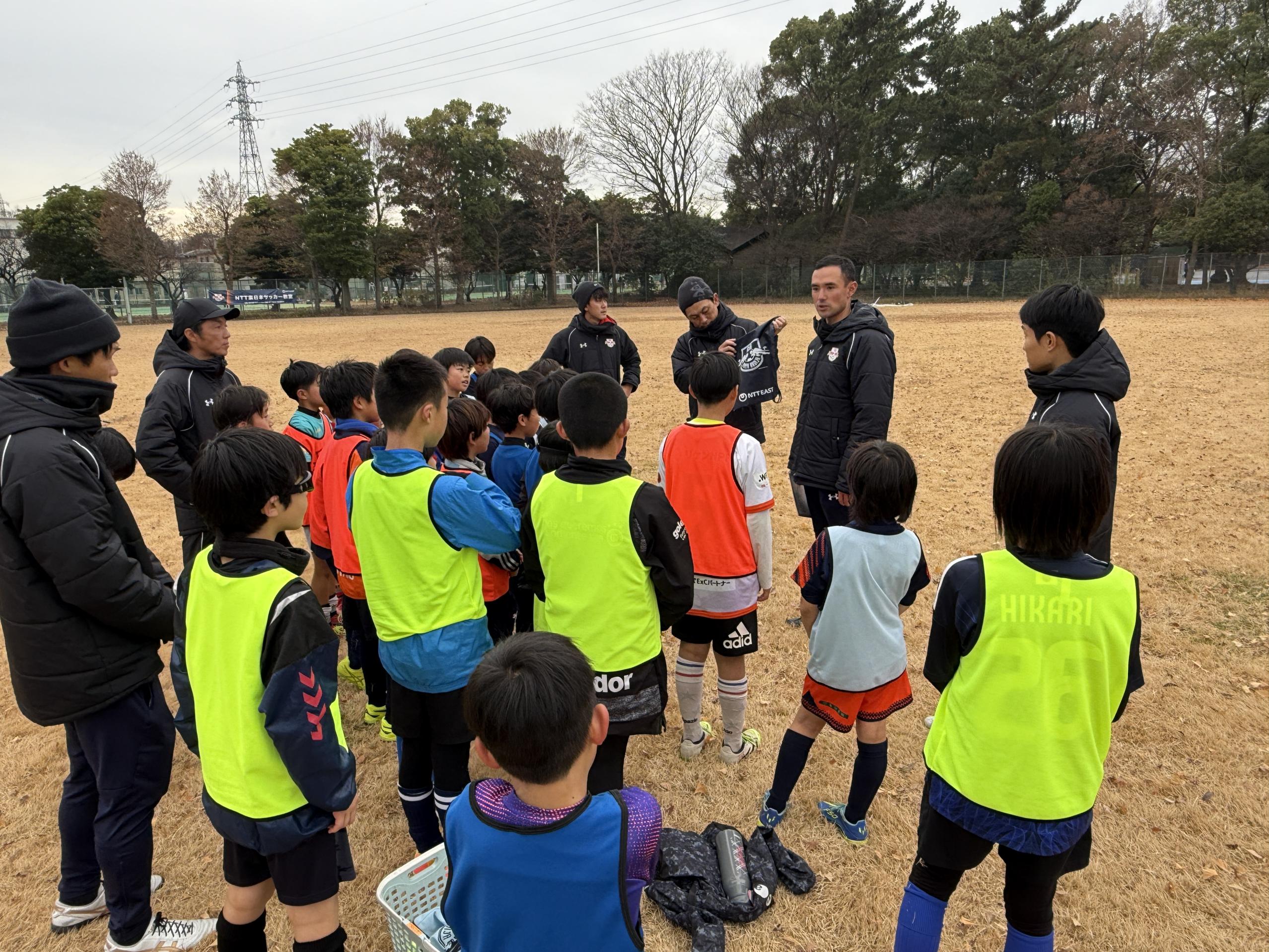 12月20日(土)、大宮第二公園にて、クラブパートナーのNTT東日本株式会社埼玉事業部による「AIカメラを使用したサッカー教室」の第2回を実施しました。