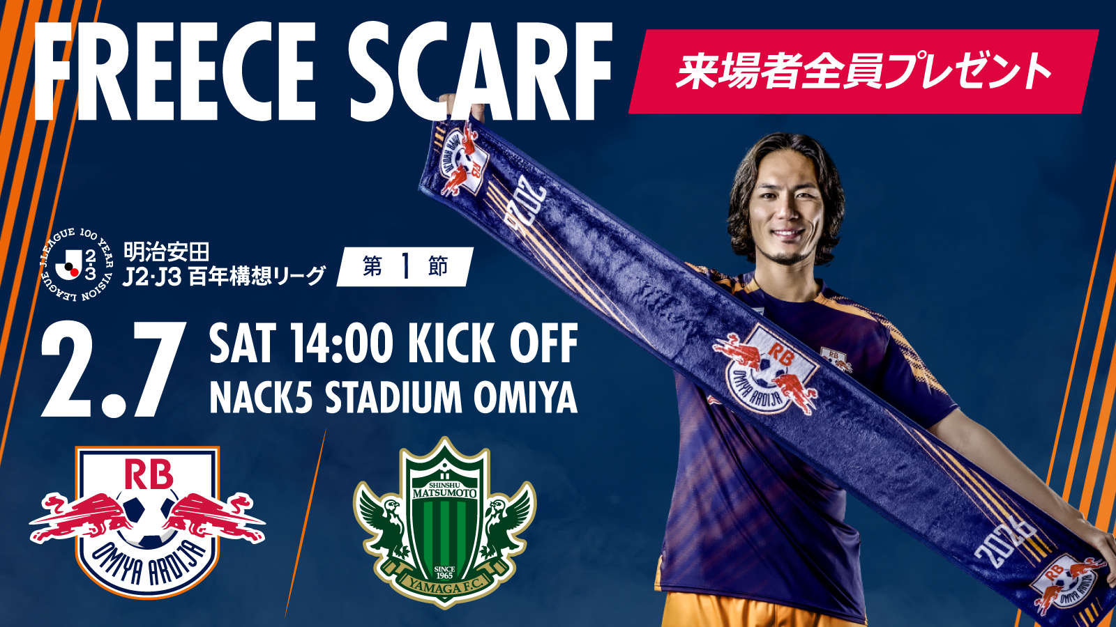 2/7・松本戦では、明治安田J2・J3百年構想リーグの開幕を記念して、来場者全員に「オリジナルフリースマフラー」をプレゼントします!