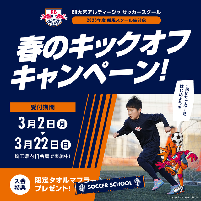 RB大宮アルディージャサッカースクール「春のキックオフキャンペーン」実施のお知らせ