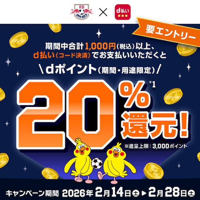 d払い20%還元キャンペーン実施のお知らせ