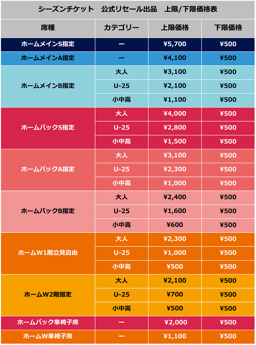 ※下限価格は全席種500円です。