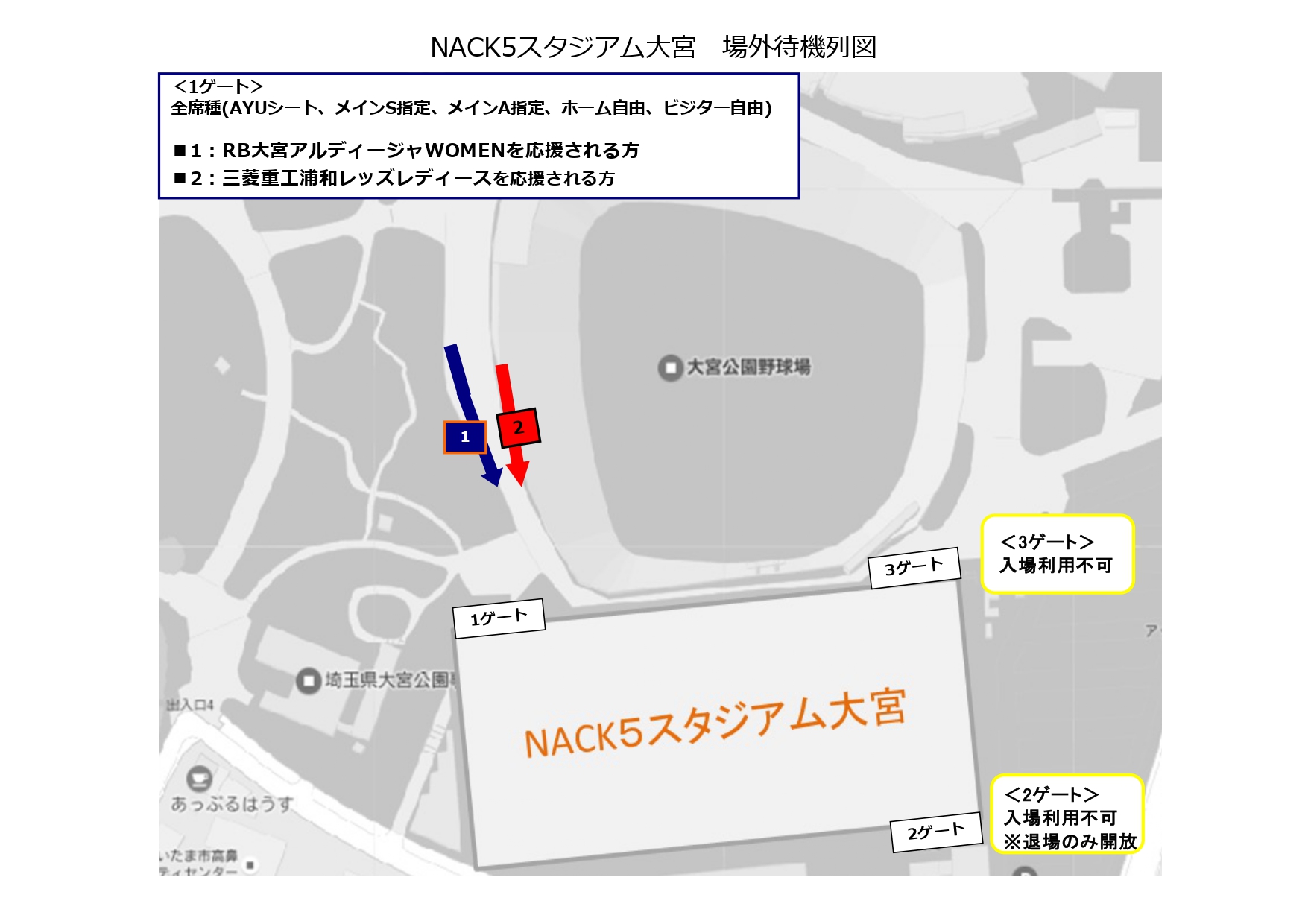 ※RB大宮アルディージャWOMENを応援される方は、上図内ネイビー矢印にお並びください。