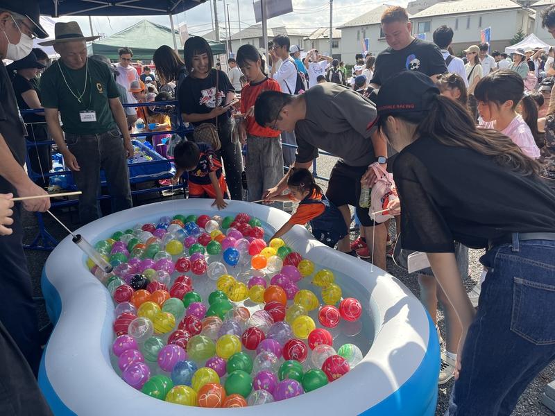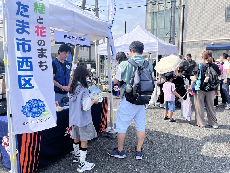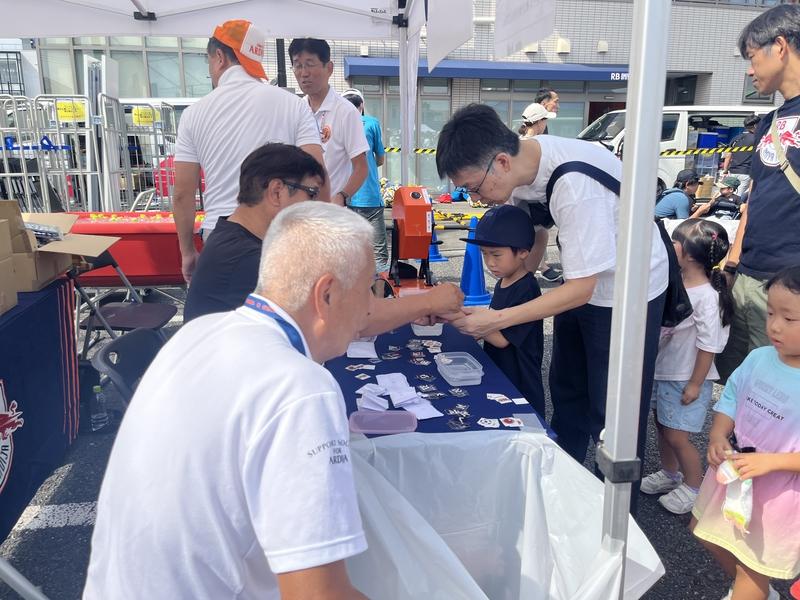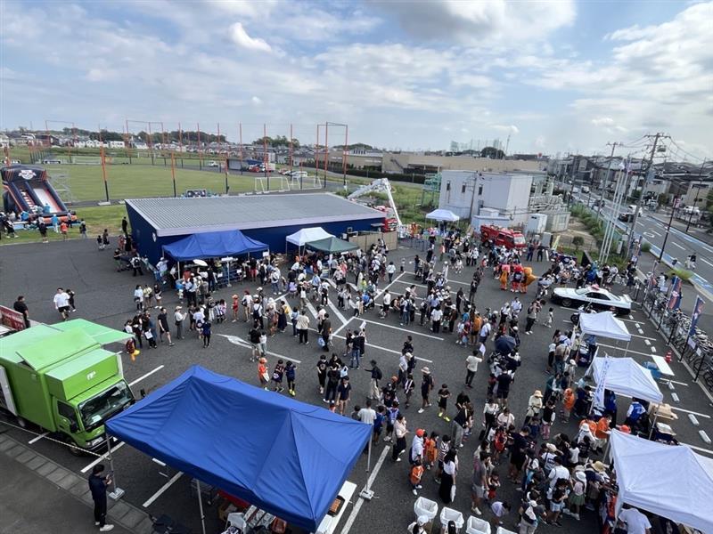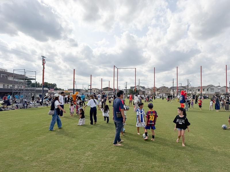 クラブハウスの駐車場では、近隣自治会の皆さまによるスーパーボール・ヨーヨーすくい、指扇商工振興連合会の皆さまによるお菓子のつかみ取りが行われ、今年も長蛇の列で子どもたちに大人気でした。そのほか、大宮西警察の皆さま、さいたま市西消防署の皆さまにもご協力いただき、白バイ・パトカーの乗車体験、はしご車の展示・乗車撮影、西区役所PRブースやアルディージャ後援会の抽選会なども行い、大いに賑わいました。また、セブン-イレブン大宮中釘店によるフランクフルトやアイスの販売、キッチンカー出店など、グルメも充実し、たくさんの方が満喫してくれました。