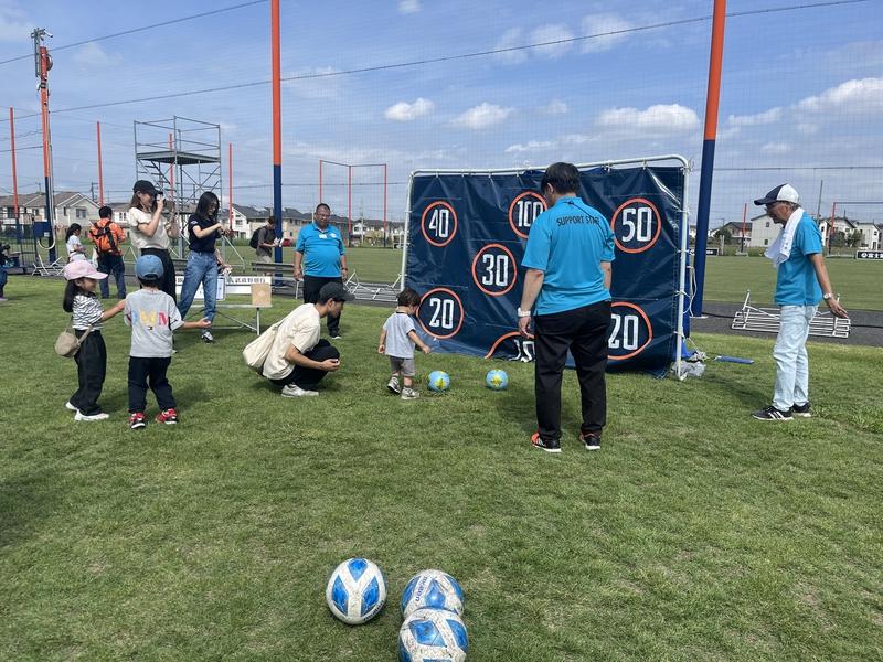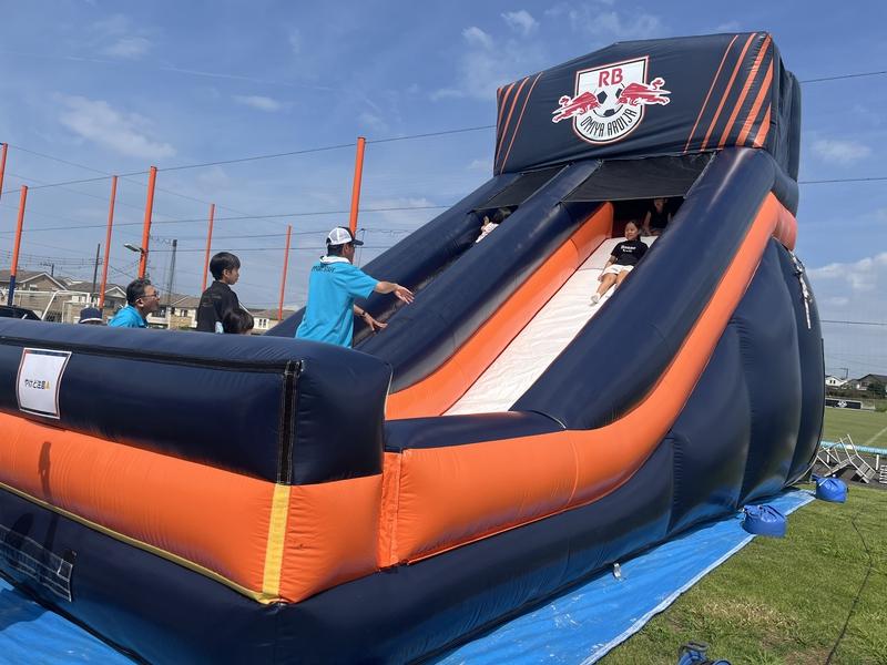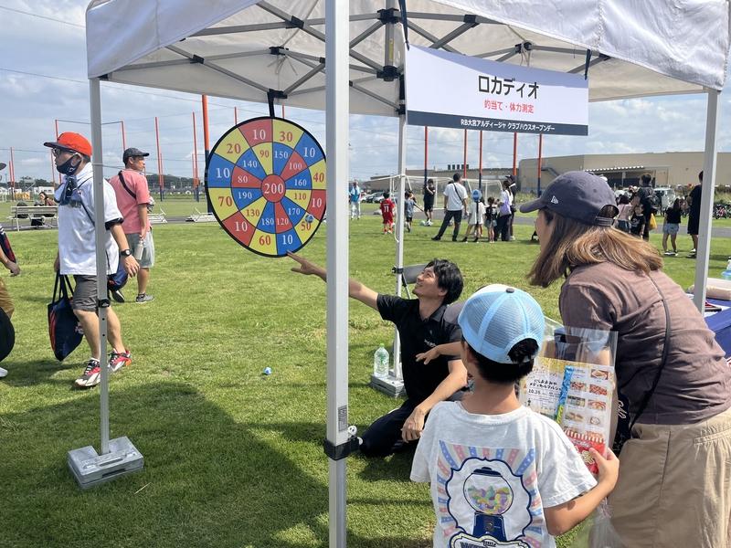 さらに、芝生の広場では、キックターゲットや地域イベント初登場のエアスライダー、RB大宮アルディージャWOMENのオフィシャルパートナーのロカディオにもご出店いただき、的当てゲームや体力測定を行いました。