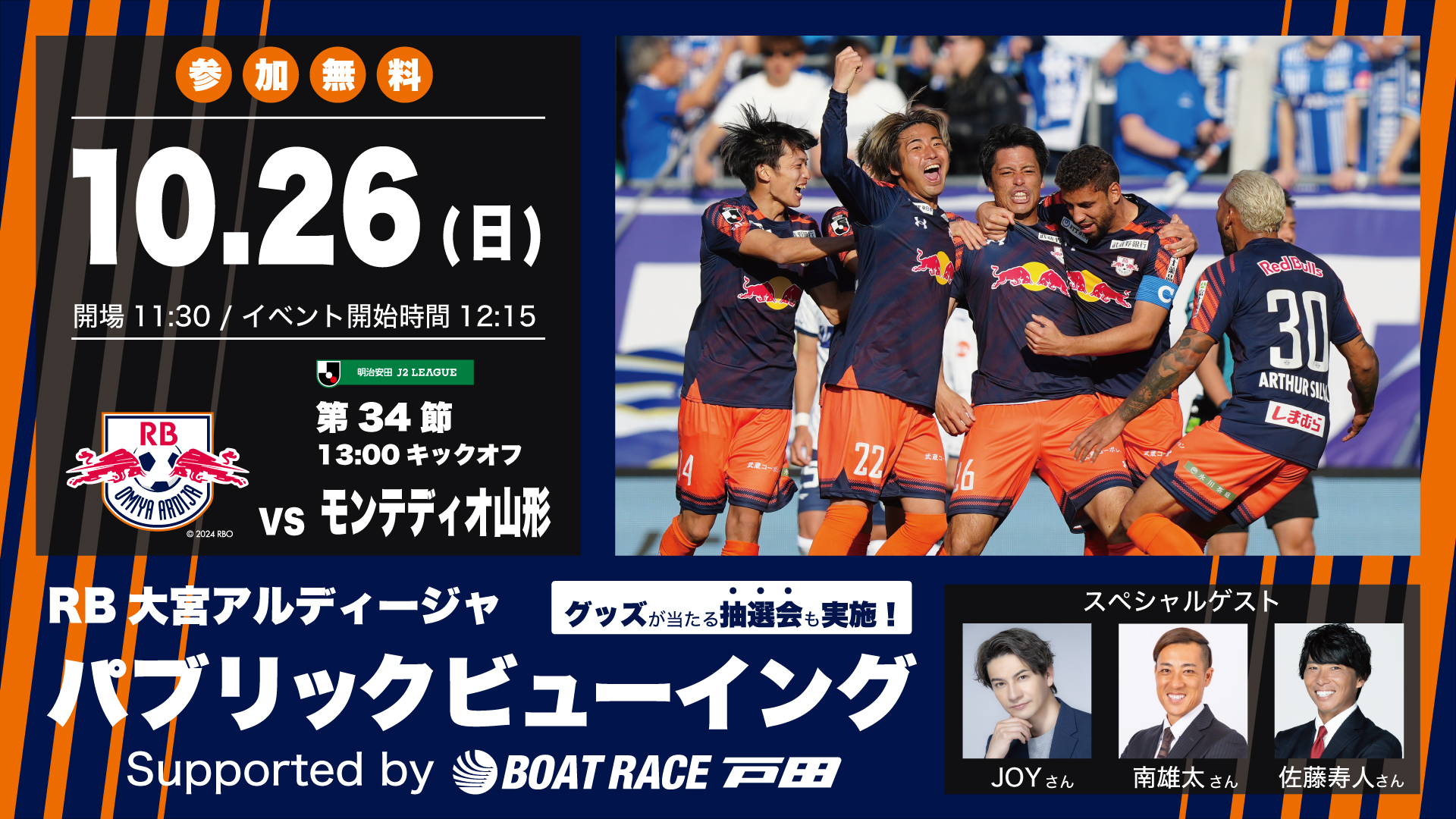 10/26・山形戦 「RB大宮アルディージャ パブリックビューイング Supported by ボートレース戸田」実施のお知らせ
