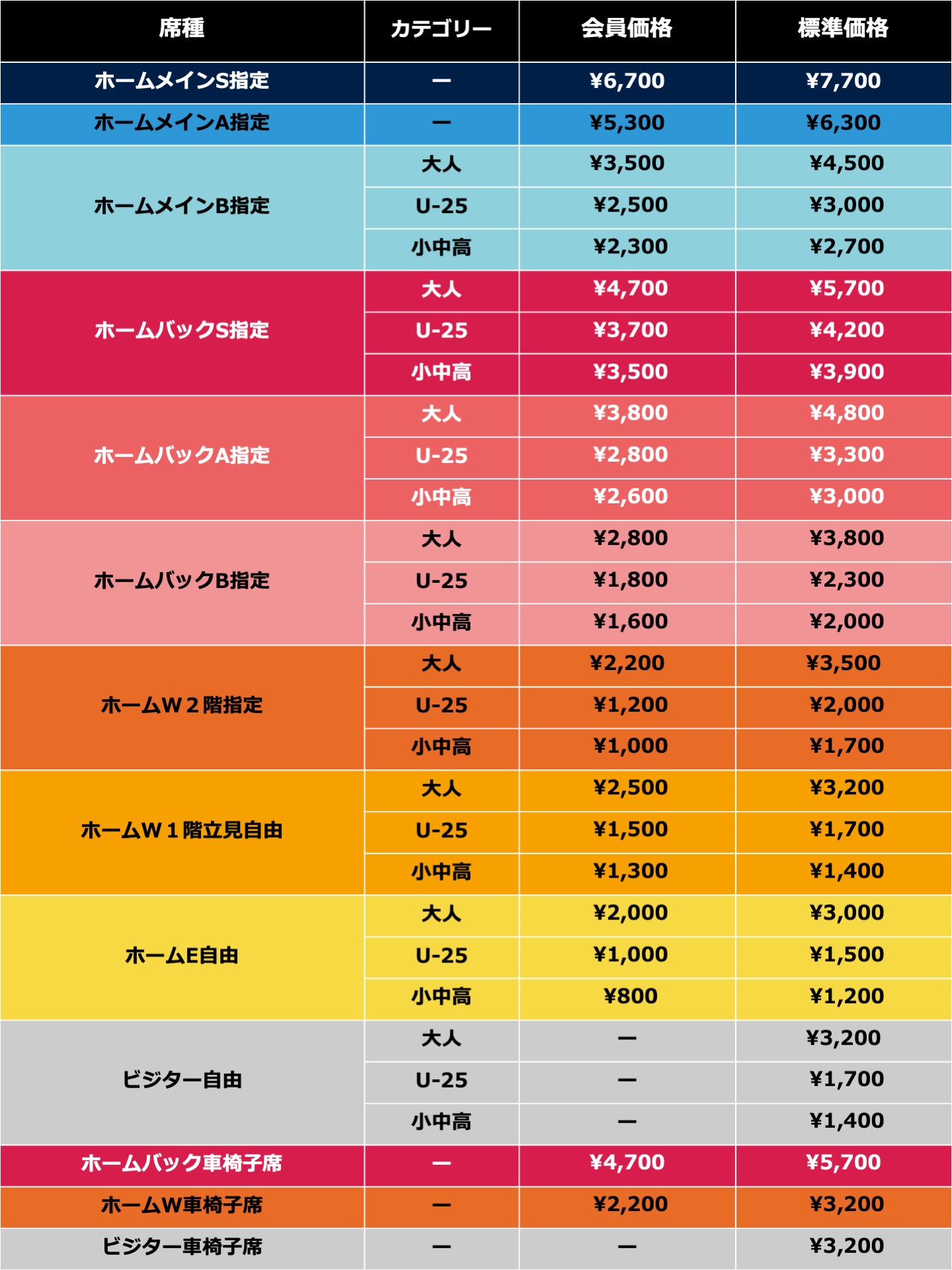 ・席種区分「シニア」は廃止となります。・「U-25」と「小中高」の対象席種を拡張します。