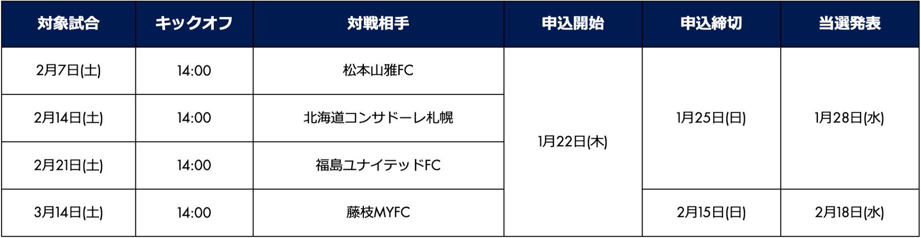 フォーム内の注意事項をよくご確認のうえ、以下の専用応募フォームよりお申込ください。※応募にはJリーグID(無料)が必要となります。