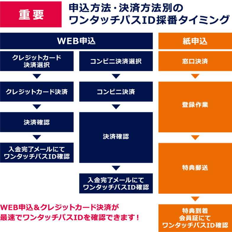 ※ワンタッチパスIDを利用した特典(チケット割引、オンラインショップでの割引購入など)をいち早く利用したい場合は、WEBからのお申込がおすすめです。