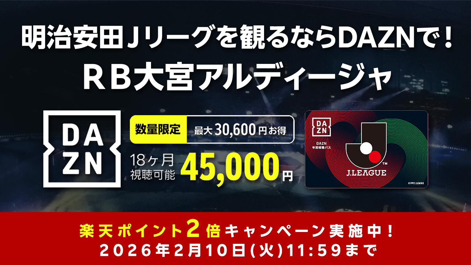 『「2026&2026/27DAZN年間視聴パス」のご購入で楽天ポイント2倍キャンペーン』実施のお知らせ