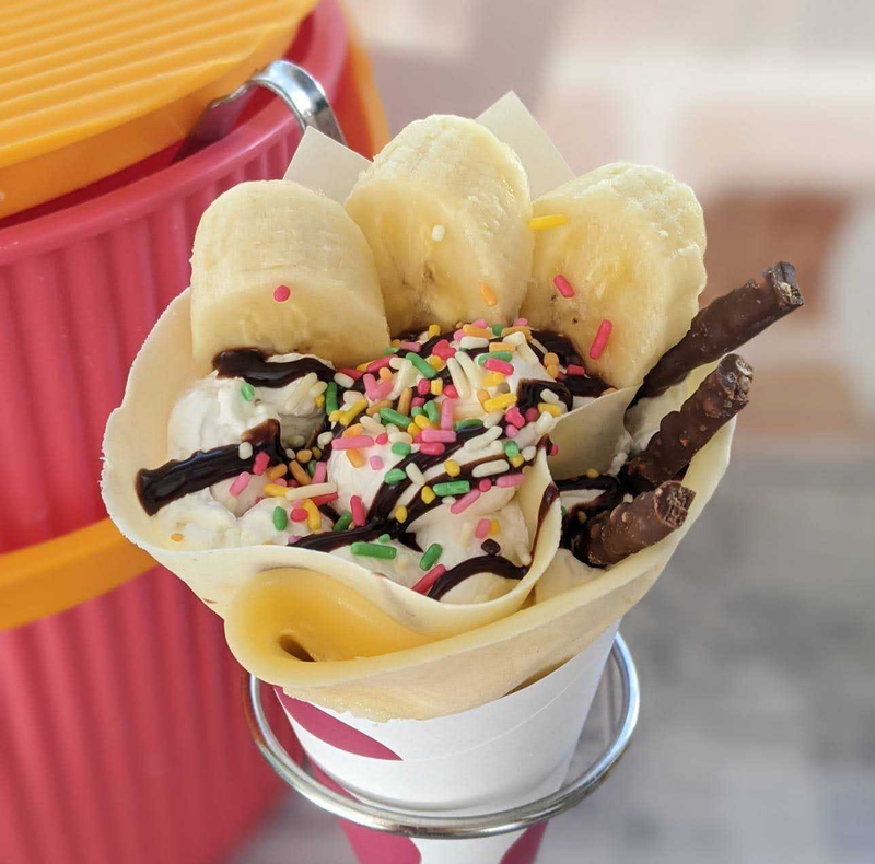 迷ったらこれ! モチモチ生地に、完熟バナナ×チョコ×カラフルスプレー。見た目も味もテンション上がる、Mnicoキッチンの定番クレープ。ぜひご賞味ください!