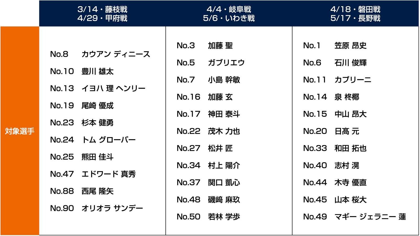3/14・藤枝戦~5/17・長野戦 先着10,000名さまにプレーヤーズカードをプレゼント!
