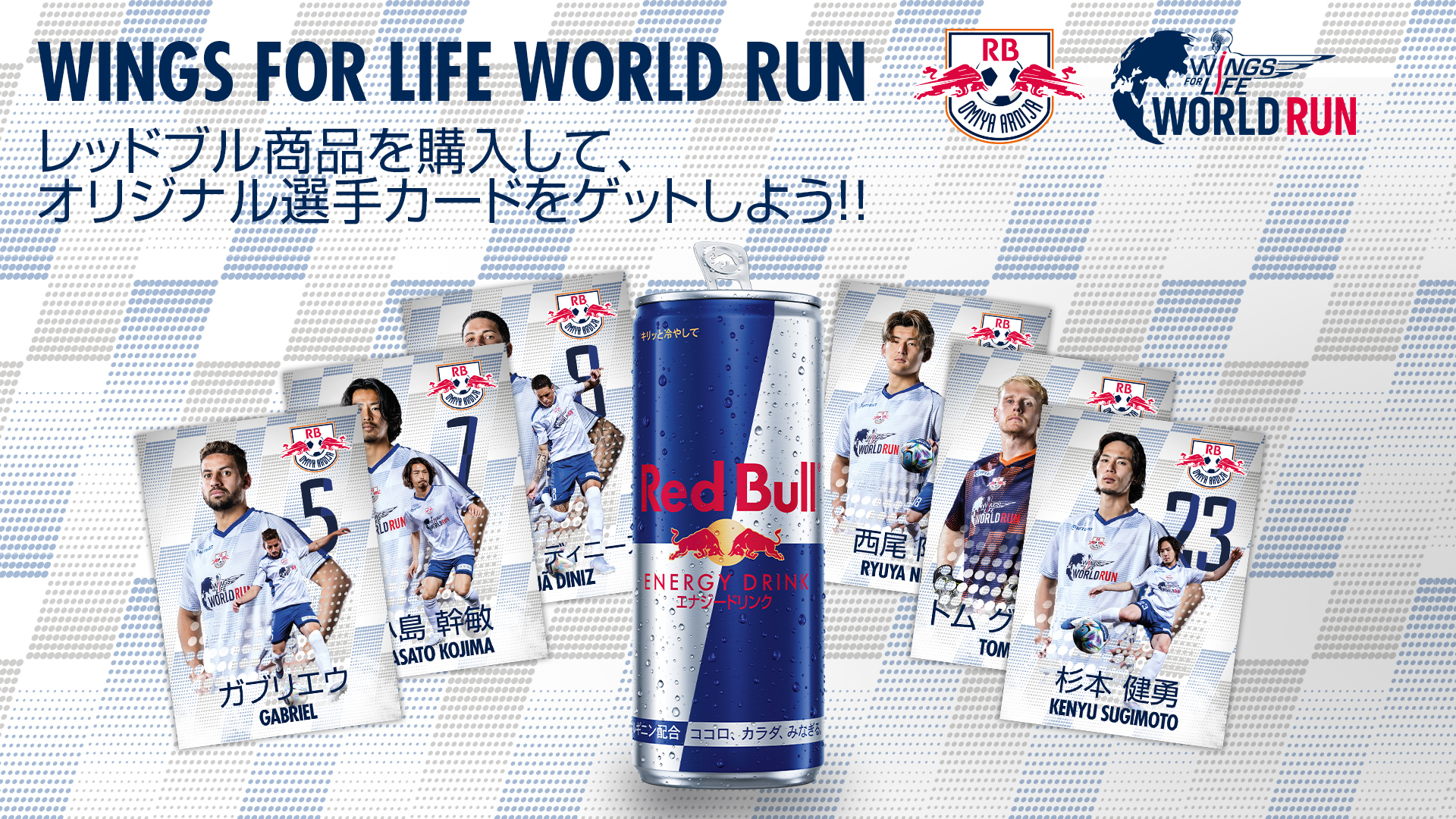 「Wings for Life World Run 2026」の開催を記念して、4/18・磐田戦~5/6・いわき戦の3試合のホームゲームにおいて、対象店舗にてレッドブルドリンク商品を購入の皆さまを対象に「Wings for Life World Run」仕様のオリジナルプレーヤーズカードをプレゼントします! ぜひ全種コンプリートを目指してコレクションをお楽しみください!