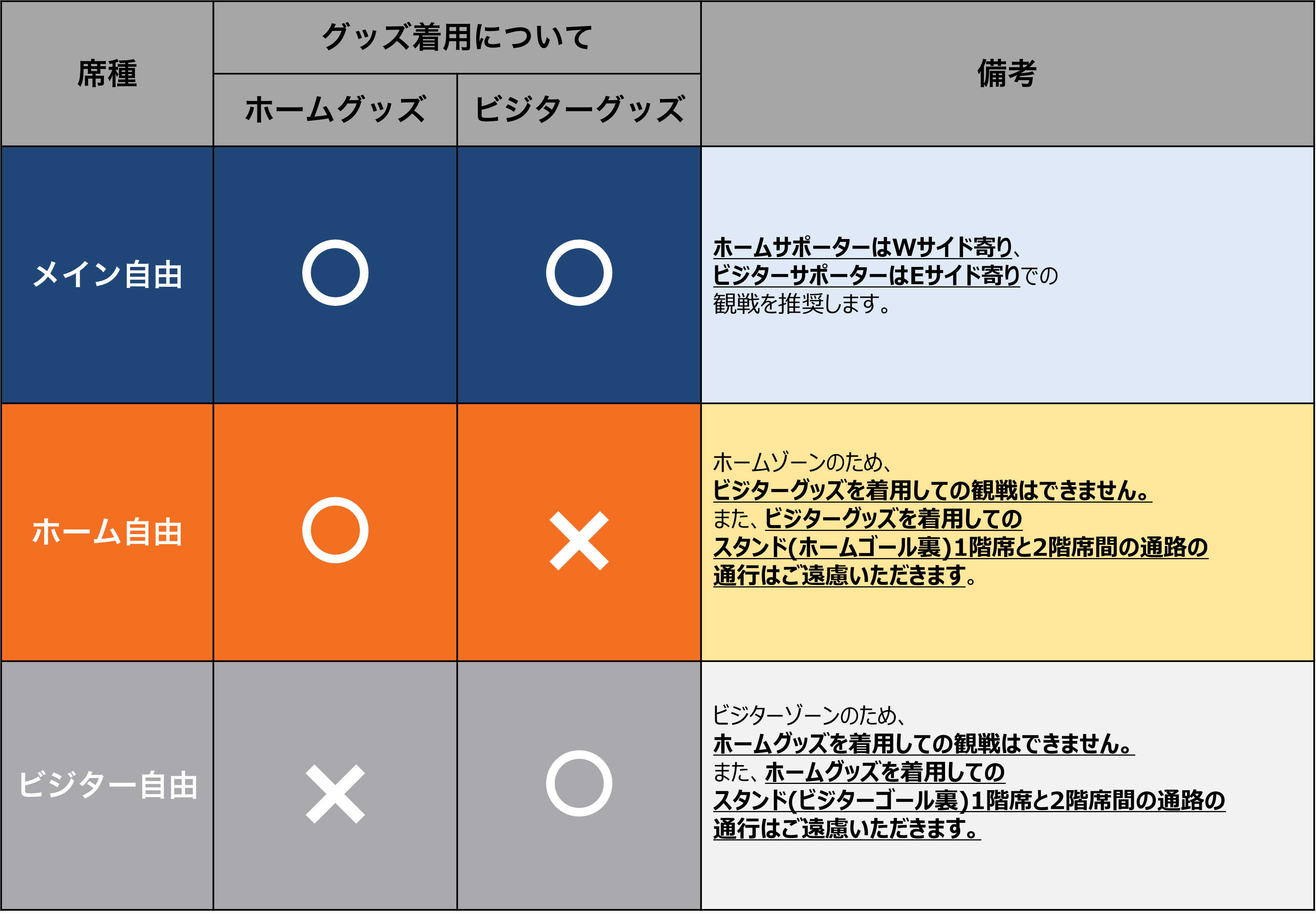 ホームグッズ、ビジターグッズの着用については、以下の表をご確認ください。